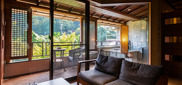 | 間取り | 12畳+フローリング ドライサウナ/温泉かけ流し露天風呂/内風呂/独立シャワールーム付 |