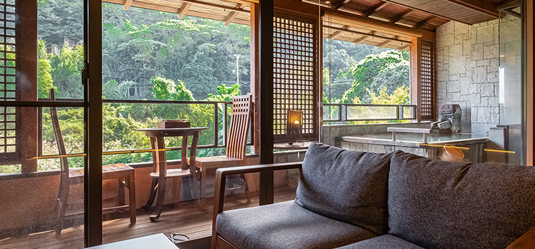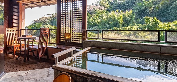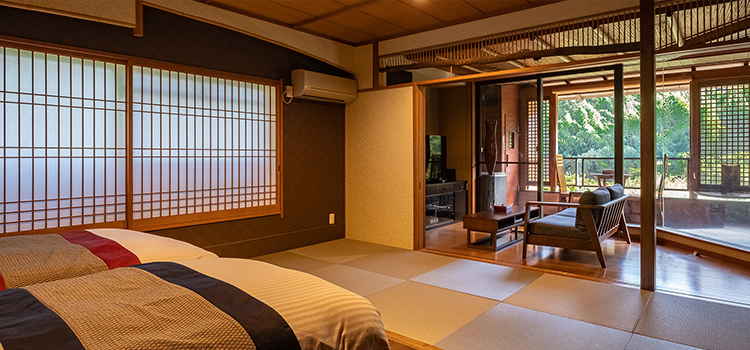 | 間取り | 10畳+次の間6畳+フローリング ドライサウナ/温泉かけ流し露天風呂/内風呂/独立シャワールーム付 |