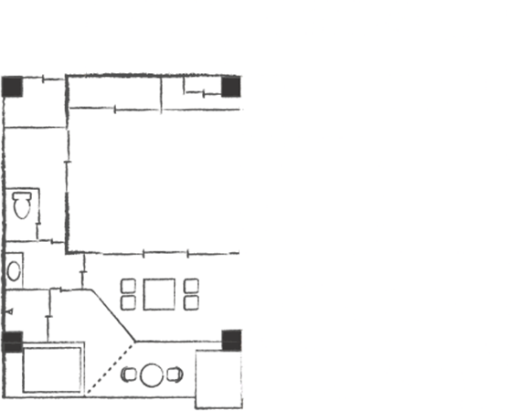| 客室設備 | テレビ2台/DVDプレーヤー/電話/個別空調/体重計/有線LAN/コーヒーマシーン/紅茶・お茶マシーン/洗浄機付トイレ2か所 /CD・MDプレーヤー/羽毛布団/冷蔵庫2台/ミニバー/ソファ |